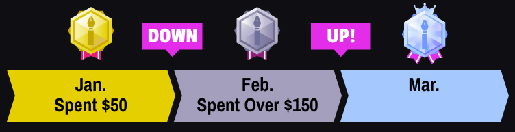 It's January and you're Gold rank! You buy $50 of tickets during the month, so your new rank for February is Silver!